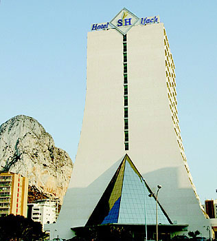 4 star hotel now owned by the SH Hotel Group, it is located 150 m from Fossa beach on the Mediterranean sea. Excellent white sandy beach lined with an attractive promenade. Just 1.5 Km. from the Rock of Ifach and the Rock of Calpe , whose historical quarter includes the walls and the only Mudejar church remaining in the region of Valencia.